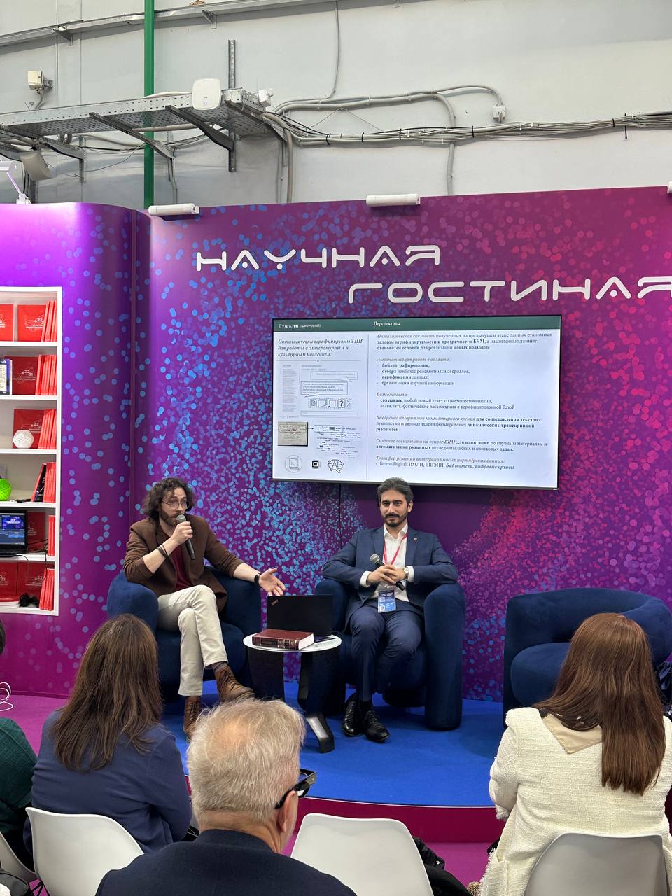 Николай Тесля, старший научный сотрудник СПб ФИЦ РАН, выступил с докладом на стенде «Научная гостиная», организованном Министерством образования и науки на тему «Цифровая трансформация культуры: между вызовом и приоритетом (по материалам проекта Пушкин Цифровой)».